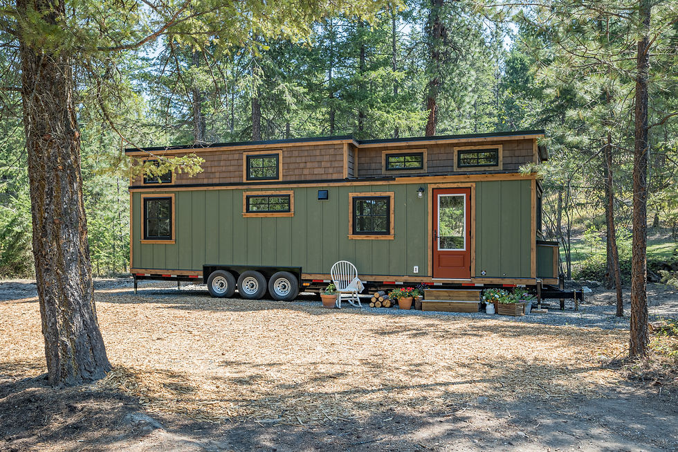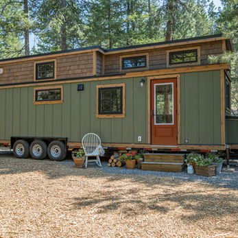 The Hummingbird, a beautifully crafted tiny home that combines rustic elegance with modern amenities to create a space that feels both timeless and fresh. Designed for those who dream of living closer to nature, The Hummingbird features rich wood finishes, earthy tones, and large windows that bring the outdoors in.